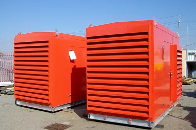 Premium acoustic panel lined enclosures to achieve our customers desired noise reduction requirements. Our construction is a range of standard 50mm and 100mm acoustic panels both plain as well as corrigated are manufactured with a CR sheet steel outer skin and a pre-galvanised perforated sheet steel inner skin. Our standard panel in-fill is 50mm – 100mm thick acoustic mineral / rock wool; other composite in-fill is also used when there is a need for higher acoustic performance.